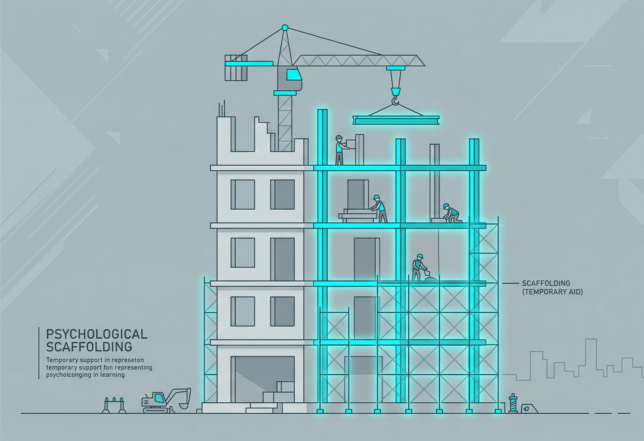 건축 공사장에서 임시로 설치하는 가설물인 '비계'에서 유래한 스캐폴딩(Scaffolding)은 학습자가 스스로 과업을 수행할 수 있을 때까지 전문가가 제공하는 일시적인 지원을 의미합니다. 단순히 정답을 알려주는 것이 아니라, 학습자가 스스로 해결책을 찾을 수 있도록 단서를 제공하고 인지적 부하를 관리해 주는 과정입니다. 학습자의 실력이 향상됨에 따라 이 지원을 점진적으로 줄여가는(Fading) 과정이 핵심입니다.