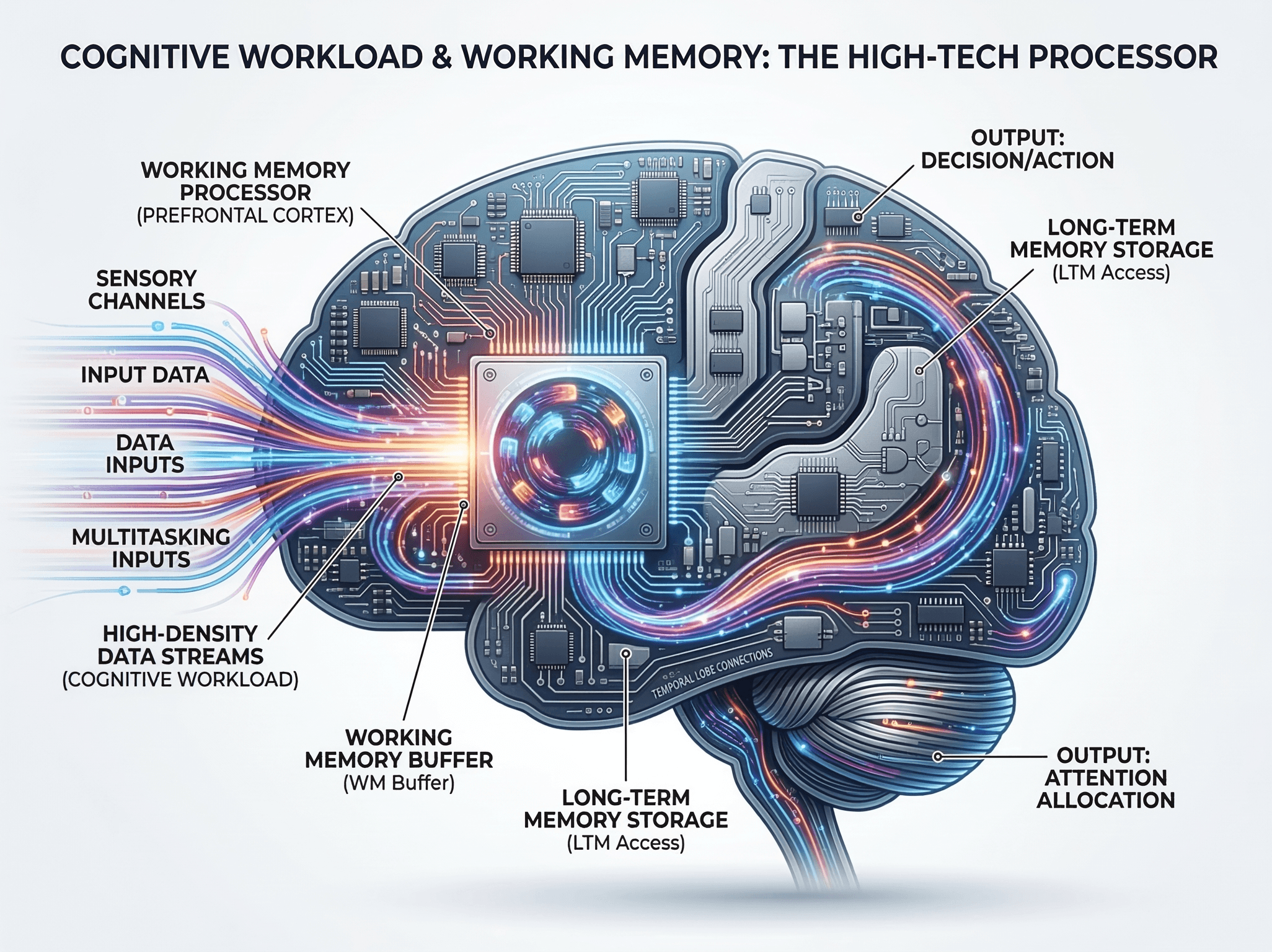 정보의 홍수 속에서 살아가는 현대 성인 학습자에게 '공부'는 단순한 시간 투자의 문제가 아닌 인지 자원 관리의 문제입니다. 교육 심리학자 존 스웰러(John Sweller)가 제안한 인지부하 이론(Cognitive Load Theory)은 우리 뇌의 작업 기억(Working Memory)이 가진 한계를 지적하며, 이를 어떻게 효율적으로 배분하느냐에 따라 학습 성과가 달라짐을 강조합니다.